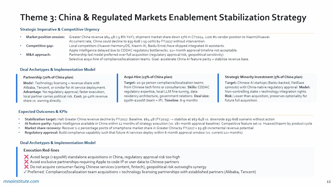 - Strategic fit scorecard: product, technology, geographic, regulatory alignment